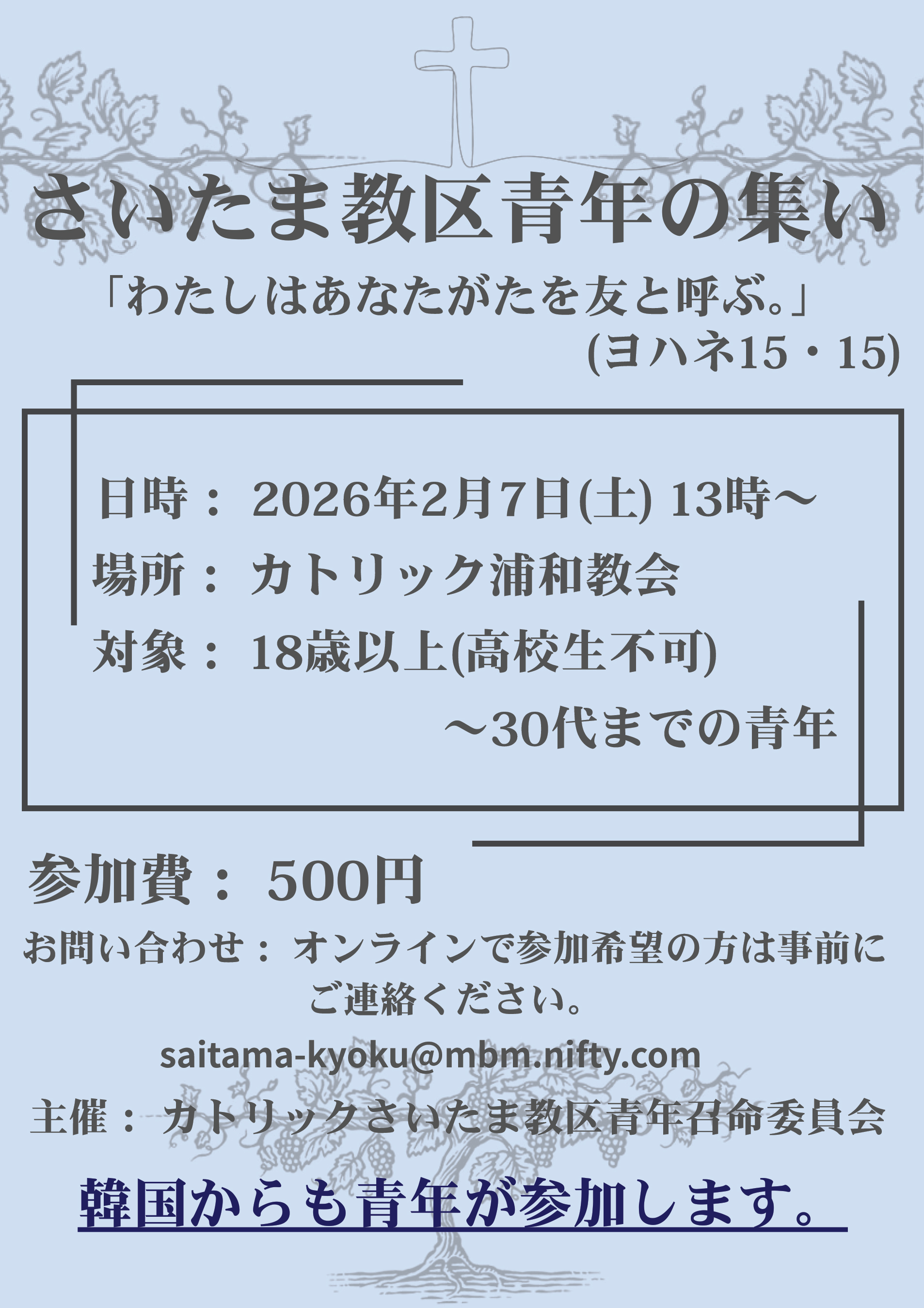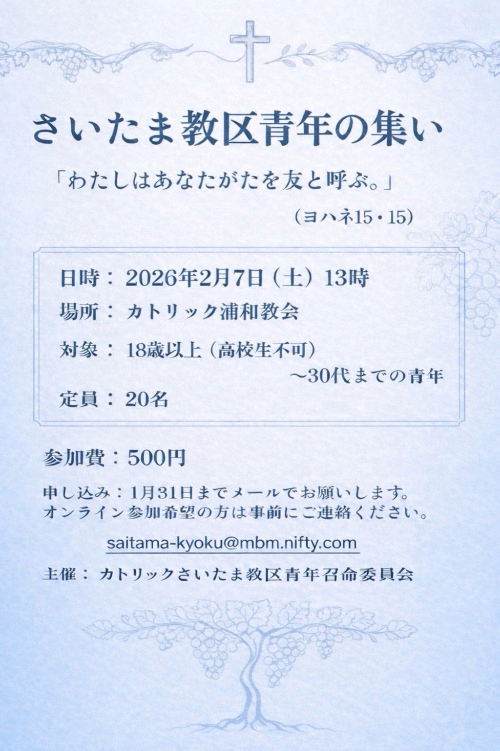 カトリックさいたま教区青年召命委員会よりお知らせいたします。