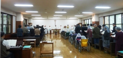 共に感謝のミサのなかで祈った。 |