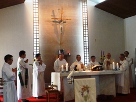 また、避難生活、仮設住宅などで不自由な生活を余儀なくされている方々が、希望のうちに歩んでいくことができるようにと祈った。 |