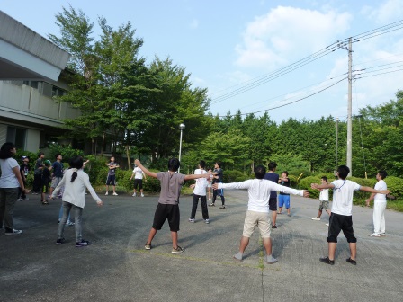 ベット・メーキングも、管理者の佐竹さんと高瀬神学生の実演入り。 |