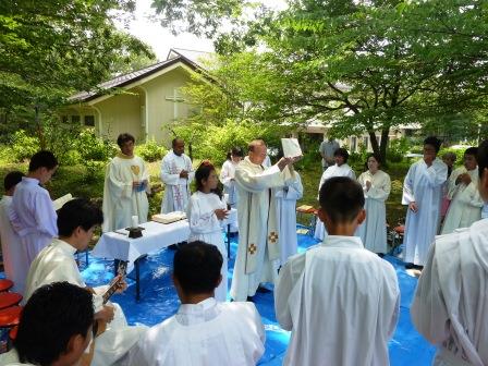 作詞 作曲*塩田泉神父 ♪♪イエスさまによばれて、今、ここに 聖霊の風に守られて 友達と一緒に 神さまに �@祈るよろこび アレルヤ ♪♪ �A仕えるよろこび アレルヤ ♪♪ �B出会えるよろこび アレルヤ ♪♪ |