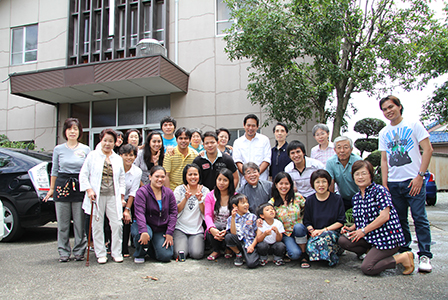 ミサ後、一つのテーブルを囲んで自己紹介。「年齢は言わなくてもいいですよ〜♪」
