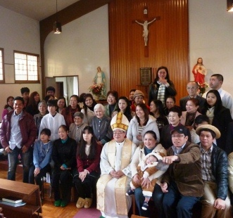 ミサ後は、司教を囲み受堅者のお祝いと自己紹介にはじまり、和やかな交流の時を過ごした。